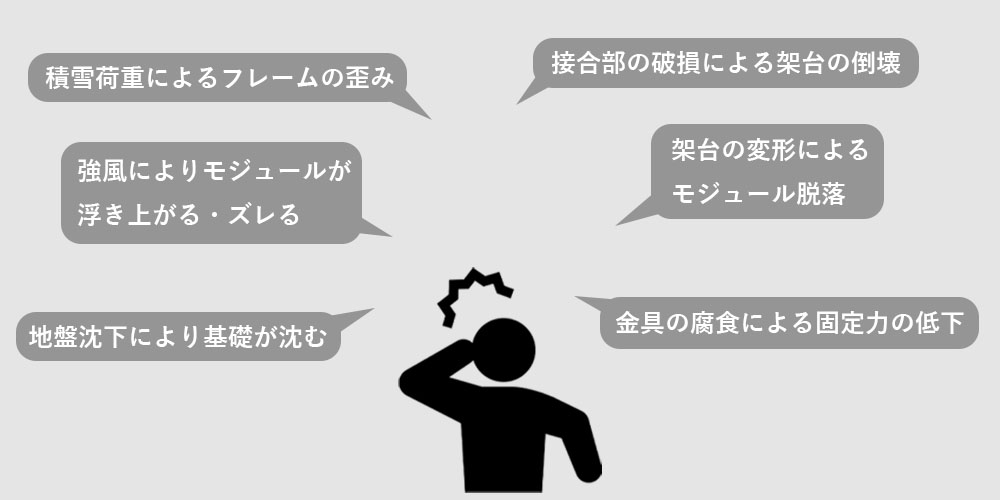 近年、既設太陽光発電所では以下のようなトラブルが報告されています。